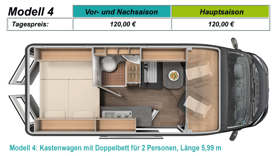 - Fahrzeugübergabe und Fahrzeugeinweisung, incl. Sanitärpaket